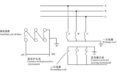 電壓互感器實際上是一個帶鐵心的變壓器。它主要由一、二次線圈、鐵心和絕緣組成。在3~60KV電網中,通常采用三只單相三繞組電壓互感器或者一只三相五柱式電壓互感器的接線形式。必須指出,不能用三相三柱式電壓互感器做這種測量。當系統發生單相接地短路